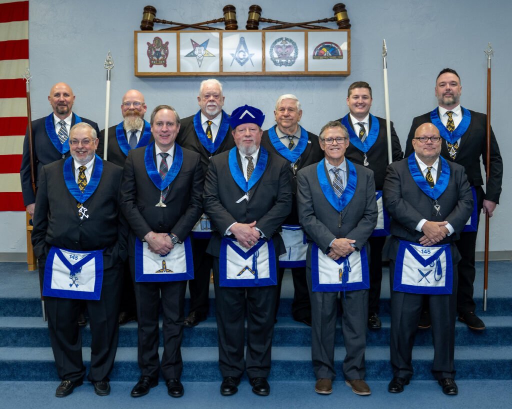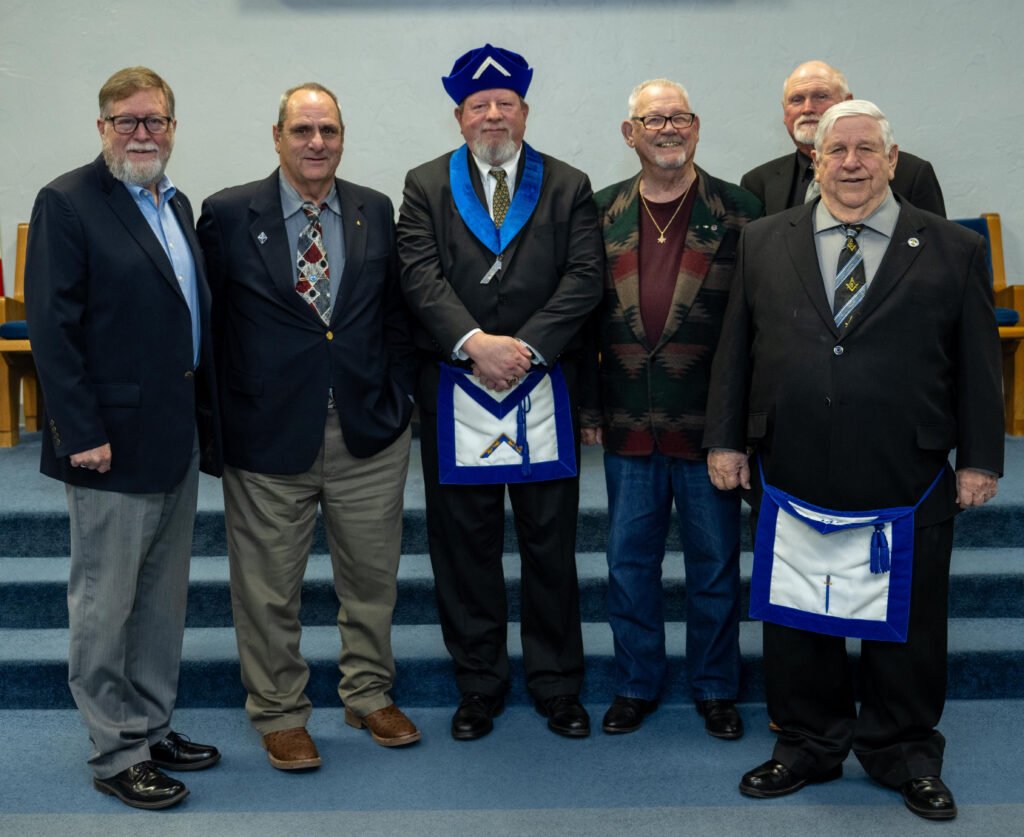 Left to Right – Ed Melott,  James E. Mosley,  WM Jim Scott,  Ken Staten, David Cloakey, John Shelton
